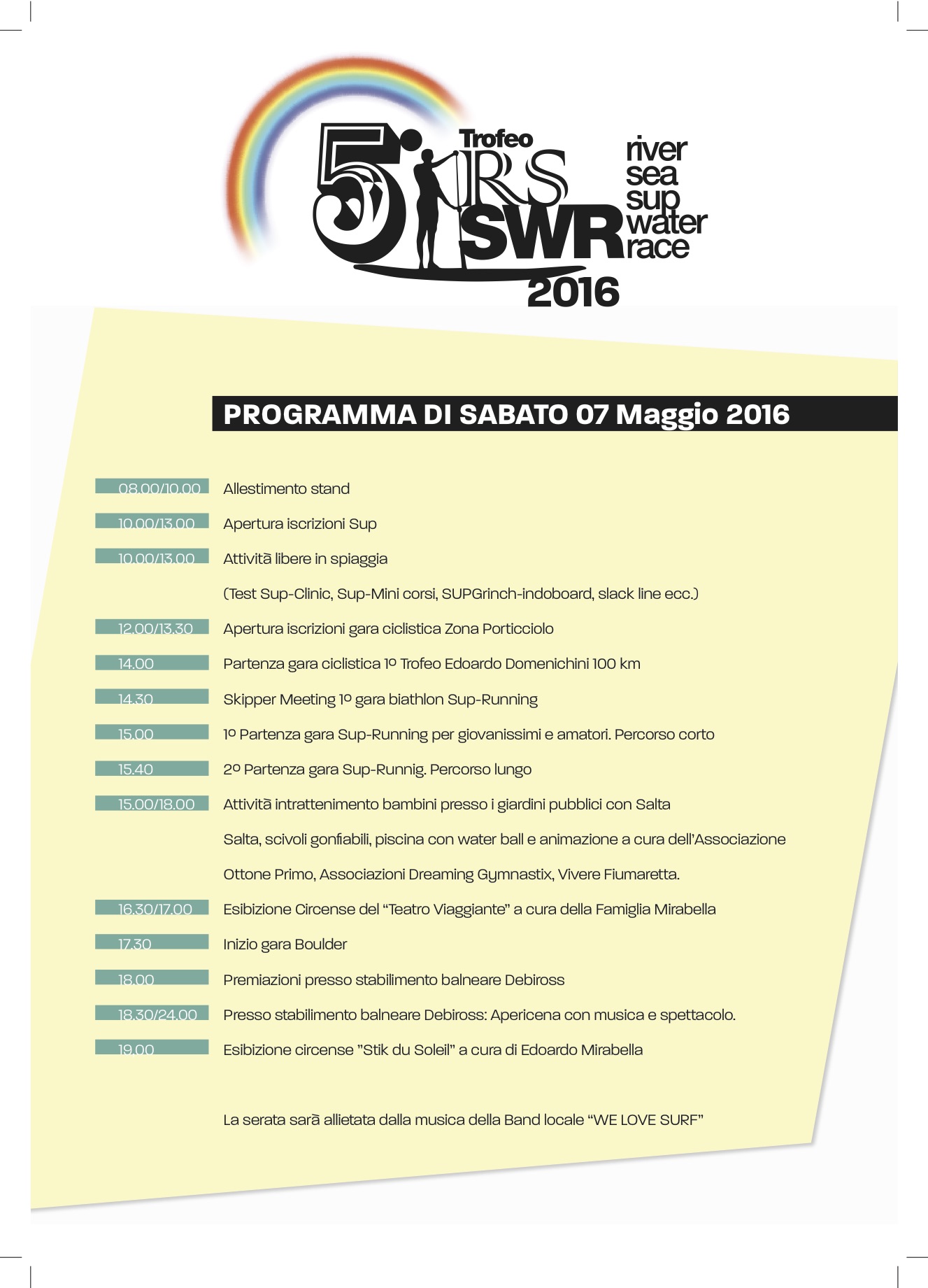 Domenica 5 River Sea Sup Water Race, 2° tappa di Campionato Italiano di SUP-RACE della Federazione Italiana Surfing.